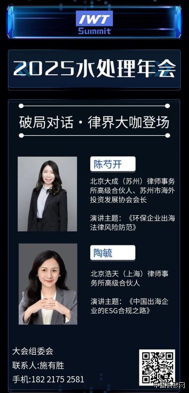 北京大成(蘇州)律師事務所高級合伙人、蘇州市海外投資發展協會會長陳芍開,將以《環保企業出海法律風險防范》為主題,結合關稅政策變動案例,拆解海外投資、爭議解決中的法律陷阱。