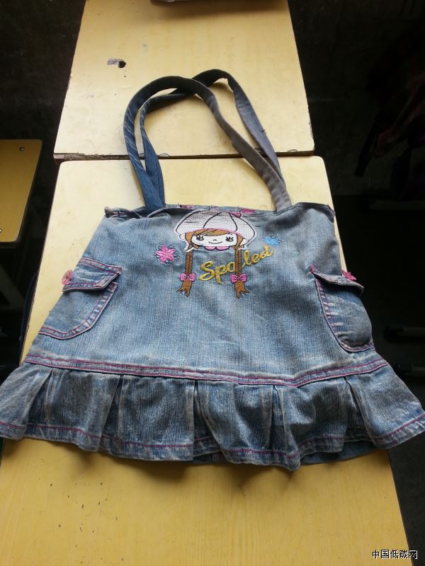開學時,女兒把我們一起完成的低碳書包背到學校,同學們見了羨慕不已,紛紛詢問是買的嗎?女兒神氣地說:“哈哈,牛仔裙改的呢!”這表情,這種自豪感,真的無法用言語來表達了。